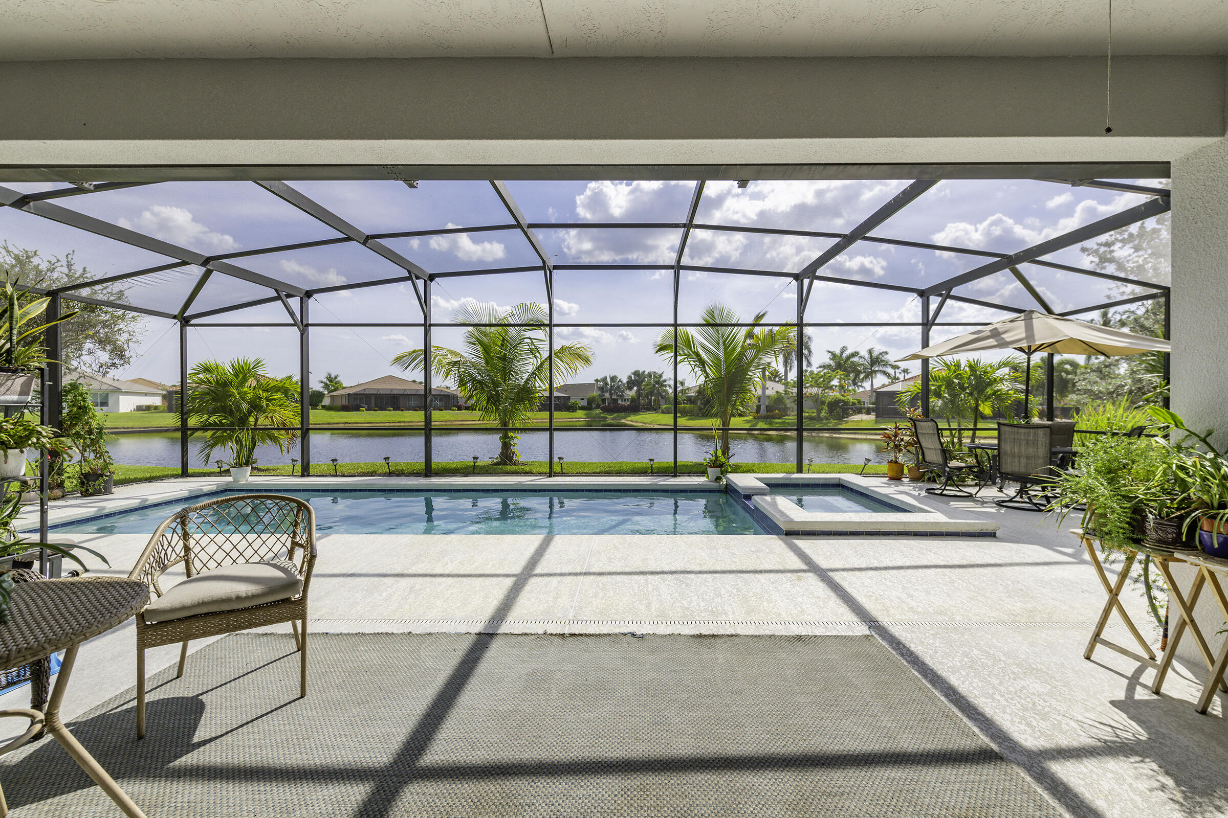 DescriptionLakefront pool home on one of the best lots in Tradition, offering sunset views, a heated pool and spa, and a private cul de sac setting on sought after Vitalia Court. 3 bedrooms plus a den and 3 full baths, including two primary suites on separate wings. CBS construction with impact glass windows and upgraded flooring throughout. Open layout with long lake views and seamless indoor outdoor living. Private bridge access to the clubhouse. HOA includes cable, internet, alarm, lawn care, fitness center, tennis, pickleball, pool, and more. Close to Cleveland Clinic, Tradition Square, shopping, and about 35 minutes to the beach.